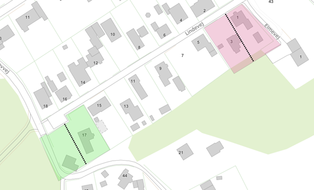 Der er købt to eller flere samlede faste ejendomme i samme udstykning. Ved første gangs salg af grunde til boligbebyggelse, ses eksempler på, at man har købt to til hinanden grænsende grunde, hvor de efterfølgende er bebygget og indrettet som én grund. Se eksemplet her fra Lindevej i Bælum, hvor de ejendomme, der er fremhævet med en farve udgør en samvurderet ejendom.